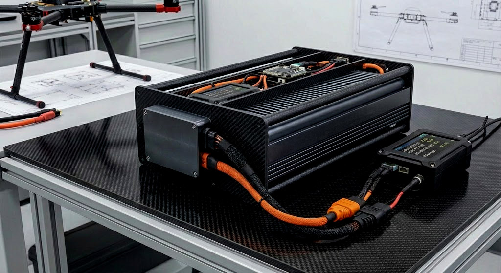 Next-generation silicon-anode battery packs delivering 30% more flight time with rapid charging capabilities.